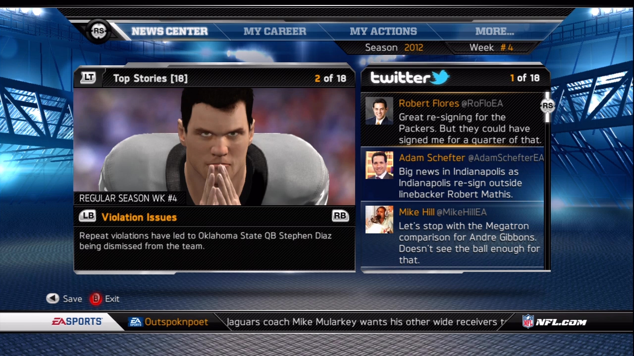 There are numerous storylines that go along with every draft class in Madden 13. This is primarily because they prevented the user from importing draft classes from NCAA 13. It was done to provide a more centered focus on the Madden 13 stories for each CCM.